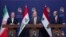 وزرای خارجه حکومتهای ایران، عراق و سوریه روز جمعه ۱۶ آذر در بیانیهای مشترک، پیشروی نیروهای مخالف در سوریه را «تهدیدی جدی» برای ثبات این کشورها دانستند.