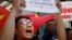 Daruruwan mutane ne Lahadinnan, suka yi dafifi da cin-cirindo a wajen kofar shiga ofishin jakadancin kasar China dake Vietnam, suna zanga-zangar nuna rashin amincewa da barin China yin musayar rijiyoyin mai a yankin ruwan tekun da ake takaddama kansu a kudancin ruwan tekun China.