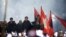 Manifestuesit mblidhen përpara godinës së qeverisë. Kryetari demokrat shpalos pikat kryesore të programit electoral për zgjedhjet 11 majit